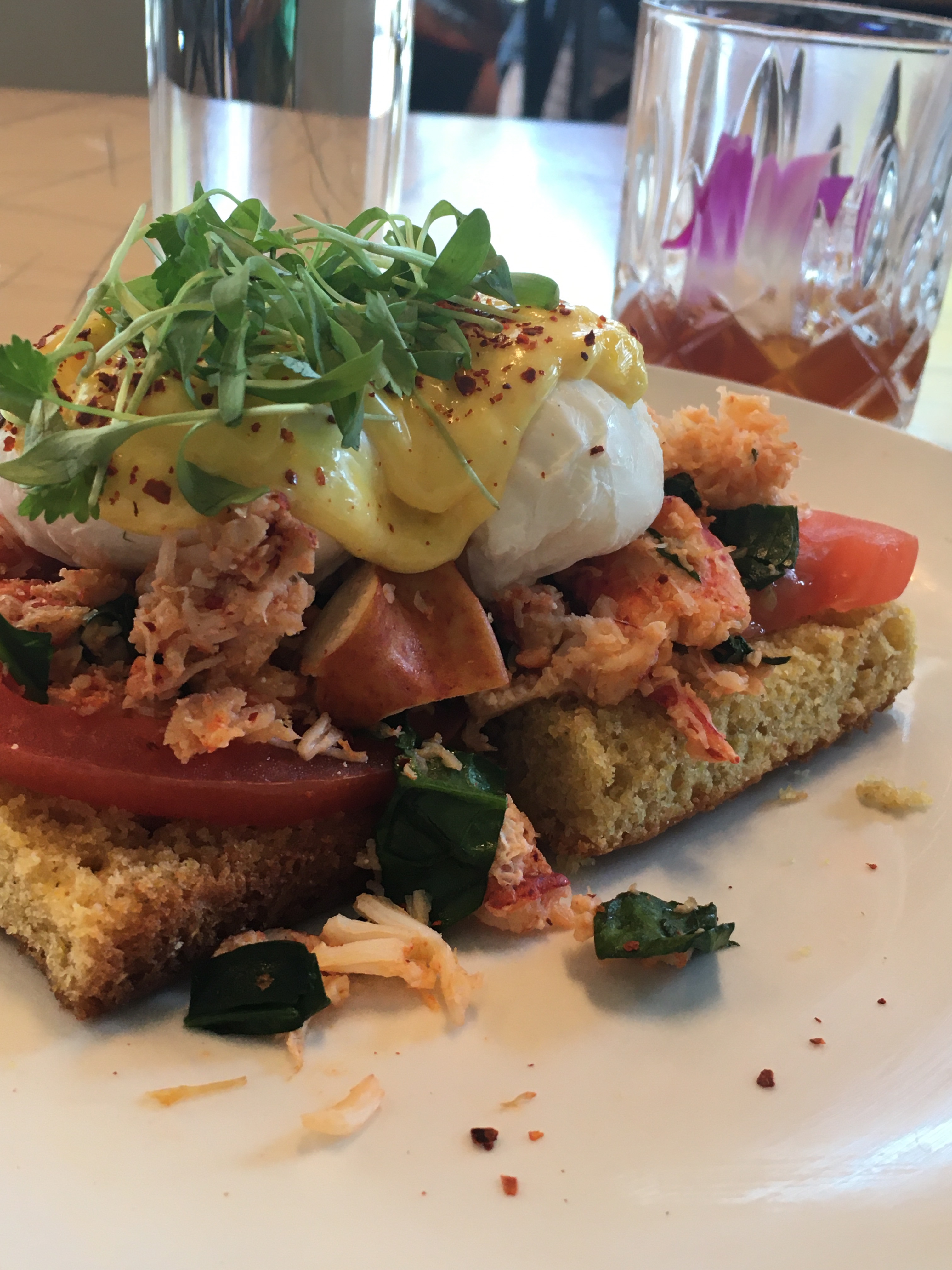 The food is pretty good. So far my favorite has been the fried cauliflower bites (top left) they were fried to perfection and the sauce that comes with it is amazing and has a nice tang to it. On the top right, the French Quarter omelette which was okay but I would have liked for it to have more flavor. The bottom picture is of the lobster benedict. The lobster benedict was pretty good, I enjoyed it being served on cornbread.
