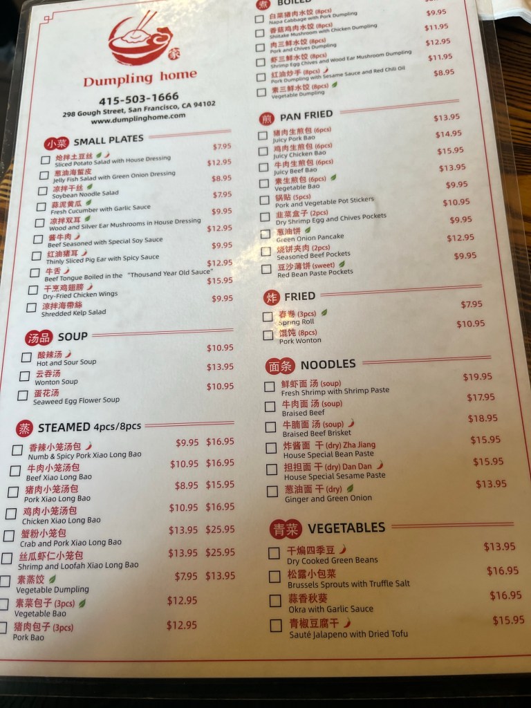 After Ghirardelli exploring and buying souvenirs, I headed over to Dumpling Home and although this place wasn’t in Chinatown it was still a top place and I would go back. I must warn you that you should be prepared to wait depending on your party size it can be 30mins to an hour. I waited a smooth 30minutes. But it was worth it. I ordered the Juicy Pork Bao and the Crab & Pork Xiao Long Bao because they were rated the most popular. They did not disappoint. They were so juicy and flavorful. I had a great time stuffing my face.