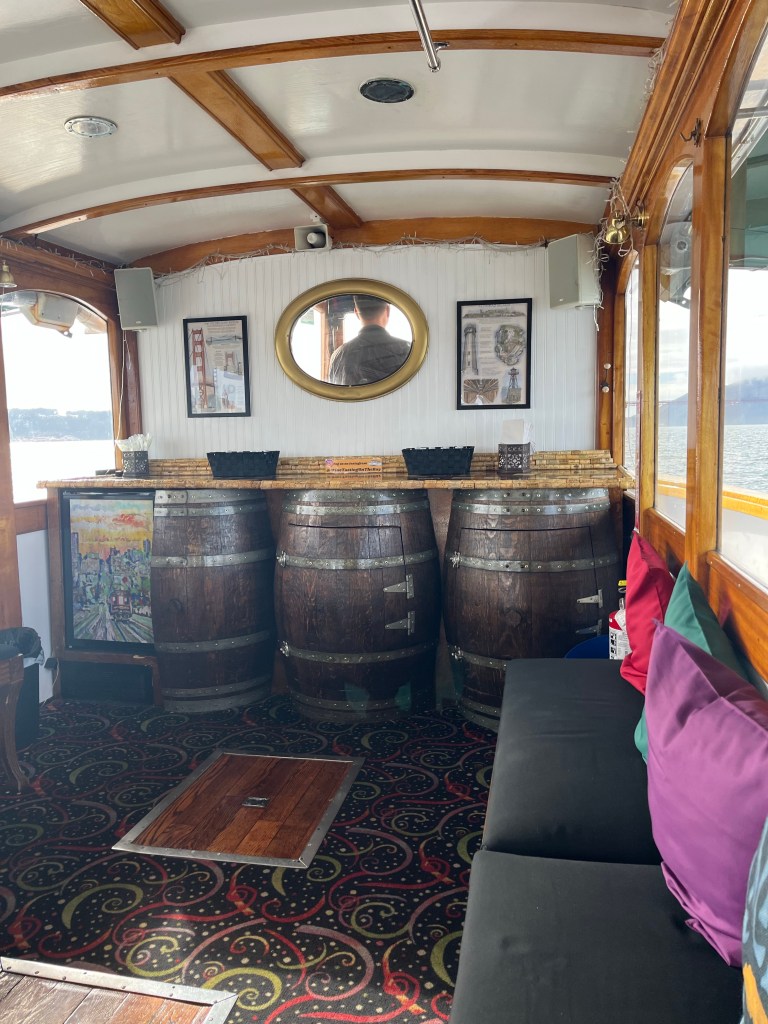 Once I was done with my lunch I wanted to take a nap but I had more stuff to do. I headed over to Pier 39 where I enjoyed a fun experience called Wine Tasting on the Bay where I was able to enjoy samples of wine while taking a ride towards the Golden Gate Bridge and then riding past Alcatraz island. Let me just say that it was a vibe, the music was right and both the captain and the host were fun and amazing. From talking to the host it can be a pretty packed boat but I thankfully did not experience that as it was getting close to their whine down season. It was myself and 4 other people which was super perfect for me.