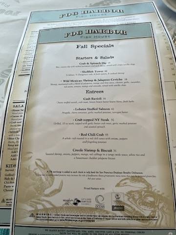 After the wine tour I was nice and buzzy so I decided to explore the pier a little since there was a lot of action going on and then I went to dinner at Fog Harbor Fish House.